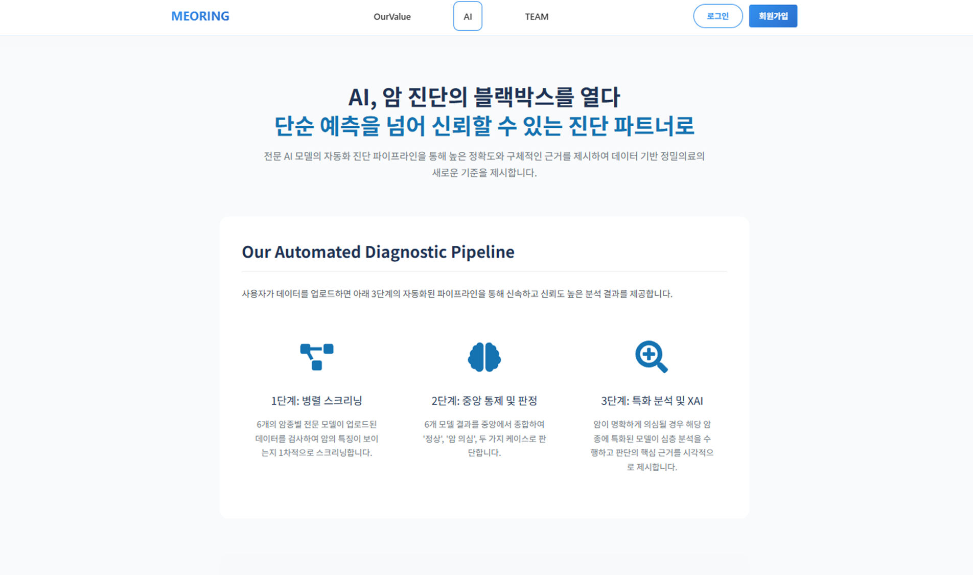 의료진의 정확한 진단과 예후 예측을 지원하는 **AI 기반 임상의사결정지원시스템(CDSS)**을 개발했습니다.